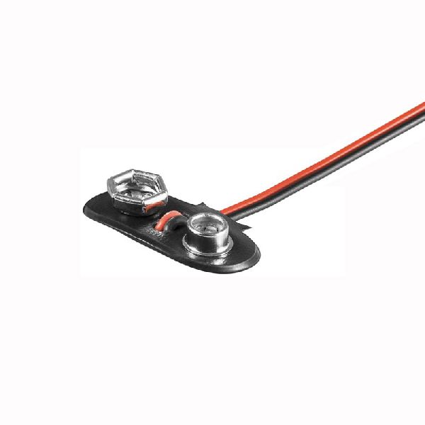 • Druckknopfanschluss kann an eine 9-V-Blockbatterie oder einen Batteriehalter angeschlossen werden.