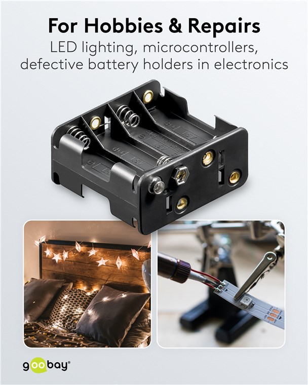 • Der Goobay-Batteriehalter kann in ein batteriebetriebenes Gerät eingebaut oder daran befestigt werden.