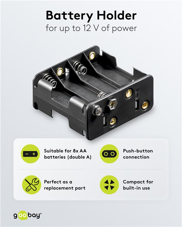 Weiterführende Links zu "Goobay 11468 8x AA (Mignon) Batteriehalter VPE Bulk Mindestbestellmenge 20"