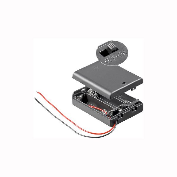 • Die AA-Batteriehalterung ist mit einem Ein- und Aus-Schalter und losen Kabelenden ausgestattet.