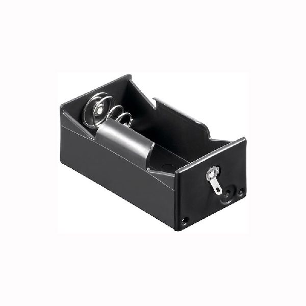 • In das offene Gehäuse aus schwarzem Kunststoff kann 1 Batterie Typ D eingesteckt werden.