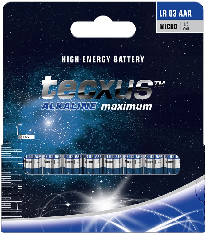 • tecxus AAA-Batterien bieten eine konstante Leistung und sind der zuverlässige Energielieferant für alle Anwendungen in Heim und Haushalt