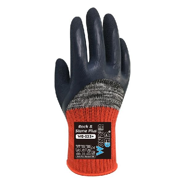 Der WG-333+ Rock & Stone ist ein Handschuh mit doppelter Latexbeschichtung auf einem 10-Gauge-Innenfutter aus Baumwolle und Polyester. Die speziell von Wonder Grip® entwickelte HDML™ Beschichtung bietet eine rutschfeste Oberfläche für hervorragende Griffigkeit. Dieses einzigartige Produkt wurde speziell für schwere Arbeiten entwickelt. Es ist besonders robust und schützt zugleich gegen Hitze, Kälte und Schnitte (Level B ISO 13997).