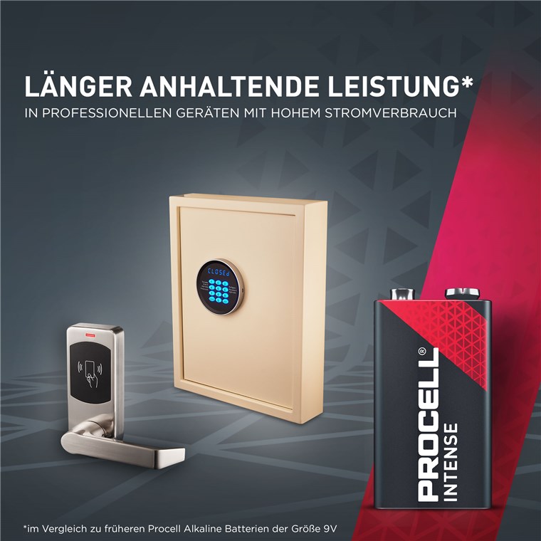 • Procell Alkaline-Batterien 6LR61/6LP3146 zeichnen sich durch eine hervorragende Korrosionsbeständigkeit aus.