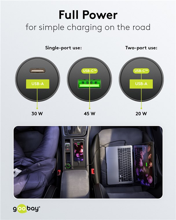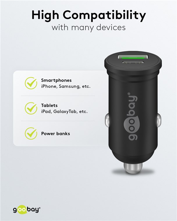 Weiterführende Links zu "Goobay 61739 Dual-USB Auto-Schnellladegerät USB-C™ PD (Power Delivery) (45 W) : VPE Retail Polybag Mindestbestellmenge 1"