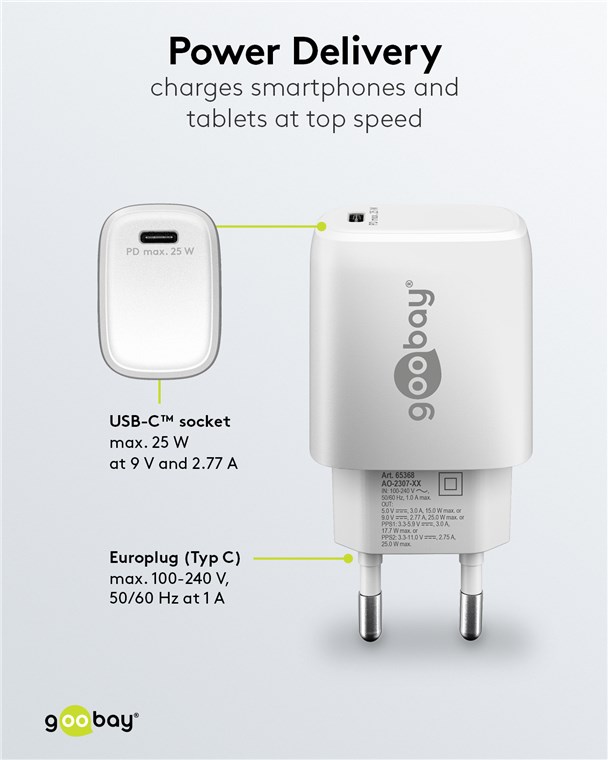 Weiterführende Links zu "Goobay 65368 USB-C™ PD GaN Schnellladegerät (25 W) weiß VPE Retail Polybag Mindestbestellmenge 1"