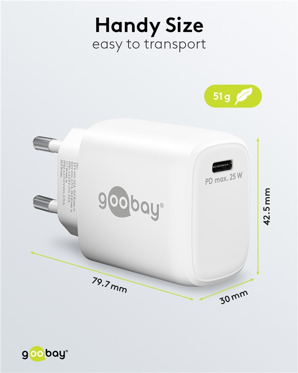 Produktinformationen "Goobay 65368 USB-C™ PD GaN Schnellladegerät (25 W) weiß VPE Retail Polybag Mindestbestellmenge 1"