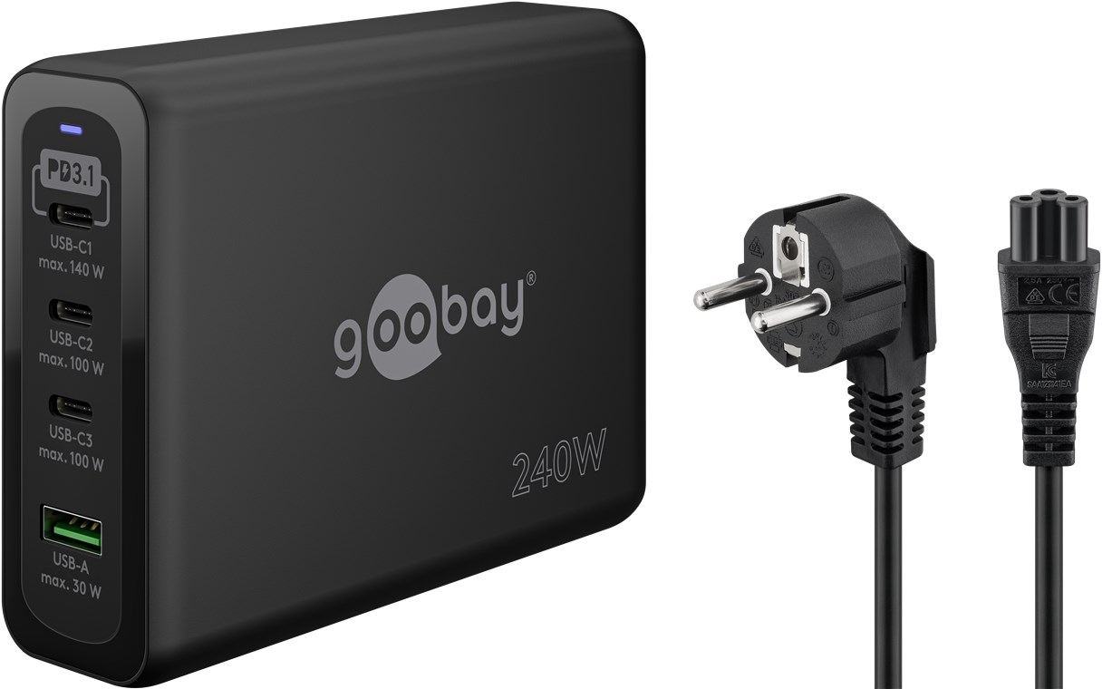 Produktinformationen "Goobay 65885 USB-C™ PD GaN Multiport-Schnellladegerät (240 W) schwarz Farbversion: schwarz VPE Bulk Mindestbestellmenge 1"