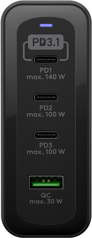 • Der ultraschnelle Power Delivery-3.1-Port liefert bis zu 140 W, während die übrigen Anschlüsse gleichzeitig bis zu drei weitere Geräte versorgen