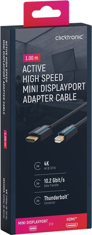 Produktinformationen "Clicktronic 70742 Aktives mini DisplayPort™-auf-HDMI™-Adapterkabel Kabellänge: 1 m VPE Retail Box Mindestbestellmenge 1"