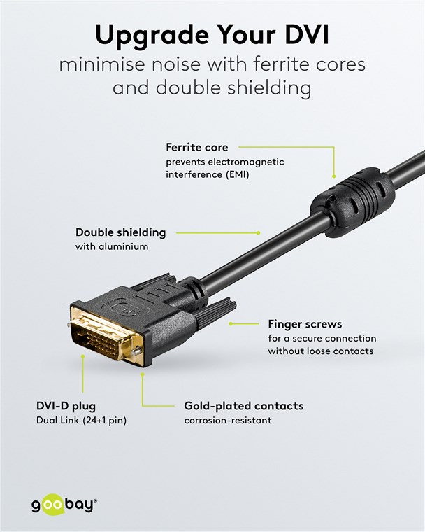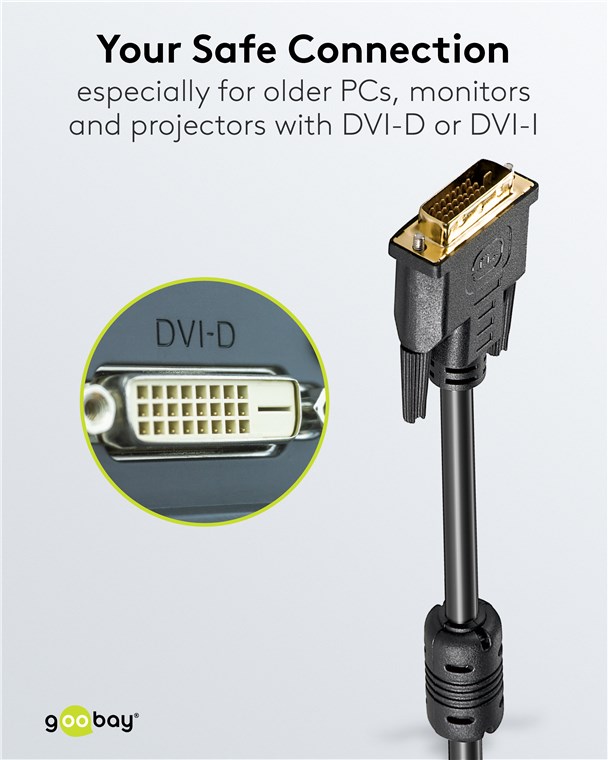 • Goobay DVI-D-Kabel mit Dual-Link (24 + 1 Pins) zur digitalen Bildübertragung vom PC zu Geräten wie Monitor oder Projektor