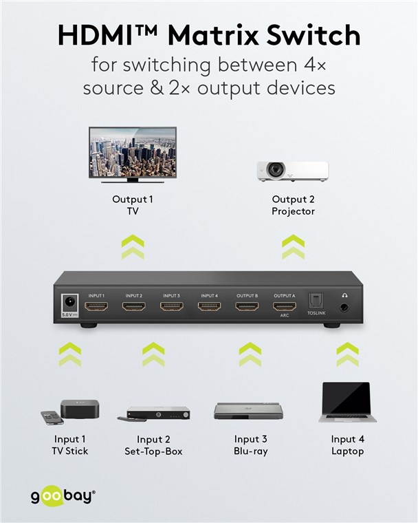 Weiterführende Links zu "Goobay 58478 HDMI™-Matrix-Schalter 4 auf 2 (4K @ 30 Hz) : VPE Bulk Mindestbestellmenge 1"