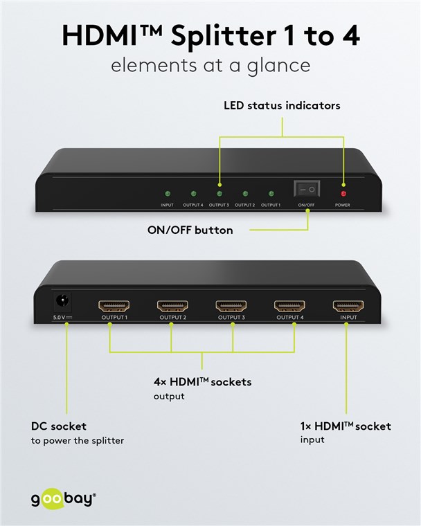 Produktinformationen "Goobay 58482 HDMI™-Splitter 1 auf 4 VPE Bulk Mindestbestellmenge 1"