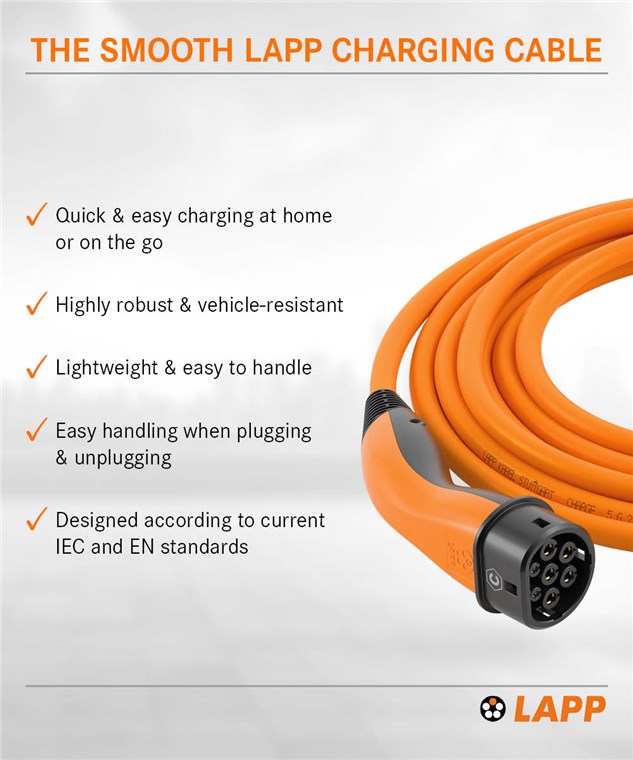 • Typ-2-Ladekabel von LAPP ermöglicht einfaches und schnelles Laden mit bis zu 22 kW an einer öffentlichen oder privaten Ladestation oder Wallbox