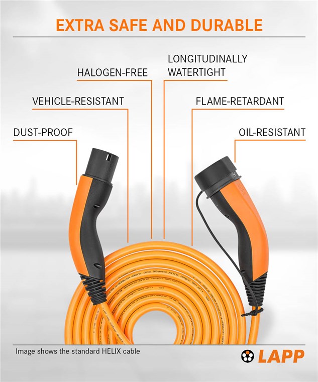 • Das Typ-2-Ladekabel von LAPP ermöglicht einfaches und schnelles Laden mit bis zu 22 kW an einer öffentlichen oder privaten Ladestation oder Wallbox