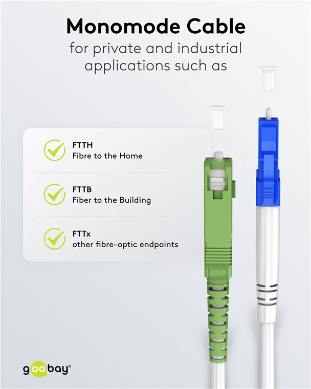 Das Patchkabel eignet sich für private und industrielle Anwendungen, inkl. Glasfaser bis in die Wohnung (Fibre to the Home, FTTH), und ist kompatibel mit dem FTTH-Angebot von Telekom Deutschland, Vodafone, Deutsche Glasfaser etc. Die biegeoptimierte LWL-Faser ermöglicht eine platzsparende Verlegung, ohne dabei die Dämpfung zu erhöhen und so Störungen zu riskieren.