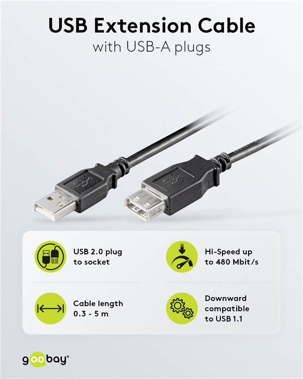 Goobay 93601 USB-A-Verlängerung, 5 m, schwarz VPE Cable Tag Mindestbestellmenge 10