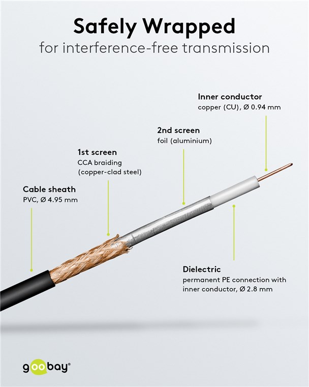Unsere Antennenkabel übertragen Signale in maximaler Qualität bei extremer Geschwindigkeit und sorgen für eine stabile Verbindung. Hochwertige Innenleiter, robuste Kabelummantelung und passgenaue Stecker zeichnen unsere Verbindungskabel und Stecker aus. Goobay hat immer das richtige Produkt für Ihr Netzwerk. Einfach. Alles. Passend!