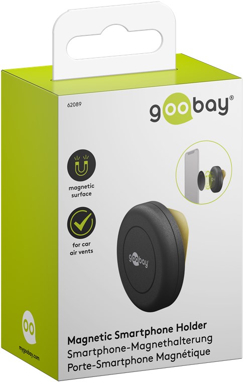 • Die Goobay Magnet-Handyhalterung fürs Auto besteht aus 1x Adapter mit Klebepad und 2x Metallplatten für das Handy.