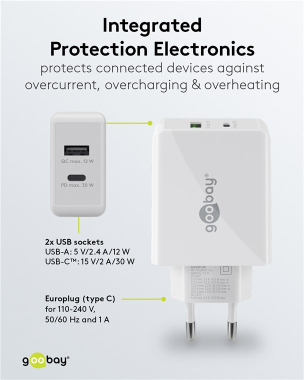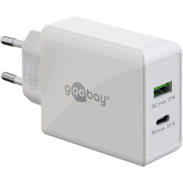 Weiterführende Links zu "Goobay 61674 USB-C™ PD Dual-Schnellladegerät (30 W) weiß VPE Retail Polybag Mindestbestellmenge 1"