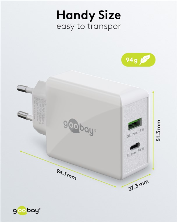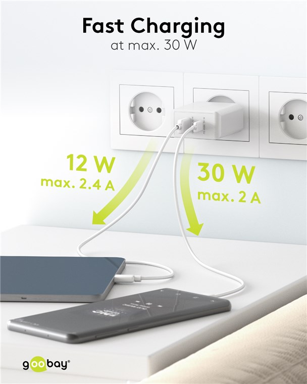 Produktinformationen "Goobay 61674 USB-C™ PD Dual-Schnellladegerät (30 W) weiß VPE Retail Polybag Mindestbestellmenge 1"