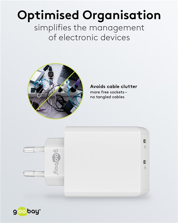 Weiterführende Links zu "Goobay 61758 USB-C™ PD Dual-Schnellladegerät (36 W) weiß VPE Retail Polybag Mindestbestellmenge 1"