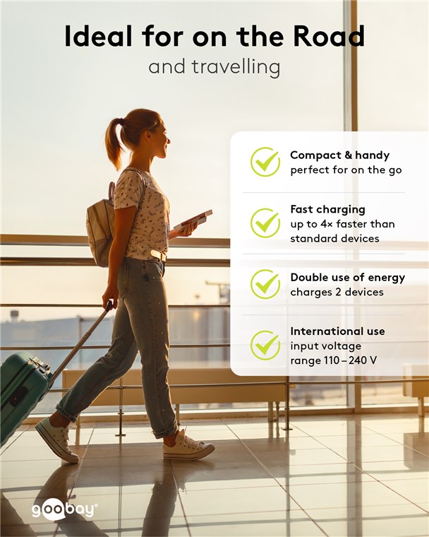 Über das USB-Ladegerät können Handys, Kameras, Kopfhörer, Smartwatches, Tablets u. v. m. mit Strom versorgt werden. Der kompakte Ladestecker wird direkt in die Steckdose eingesteckt. Das Goobay-Netzteil lädt USB-Geräte superschnell wieder auf. Einfach. Alles. Passend!