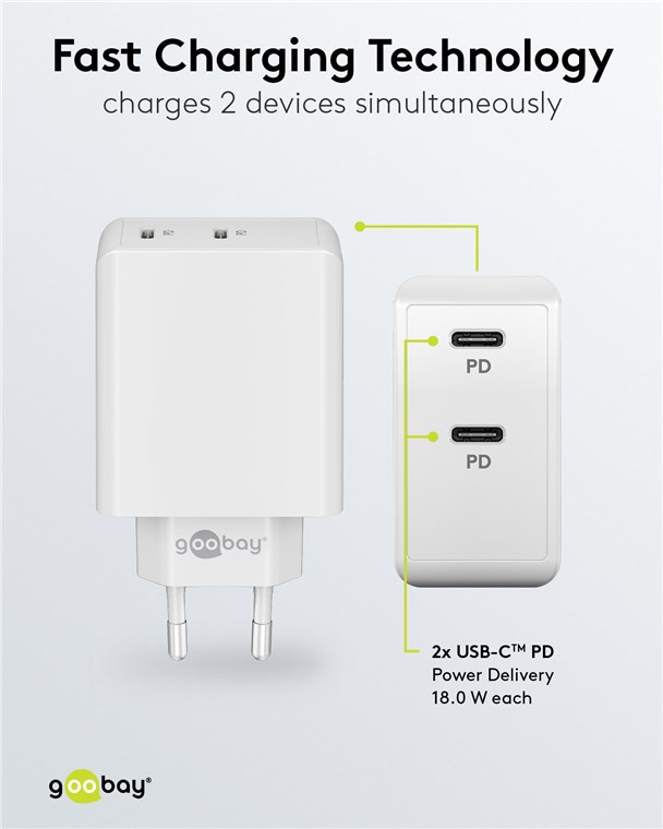 Goobay 61758 USB-C™ PD Dual-Schnellladegerät (36 W) weiß VPE Retail Polybag Mindestbestellmenge 1