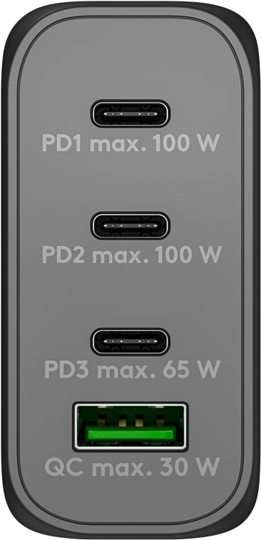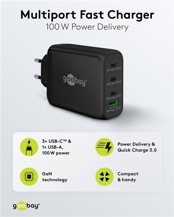Weiterführende Links zu "Goobay 65555 USB-C™ PD GaN Multiport-Schnellladegerät (100 W) schwarz VPE Retail Polybag Mindestbestellmenge 1"