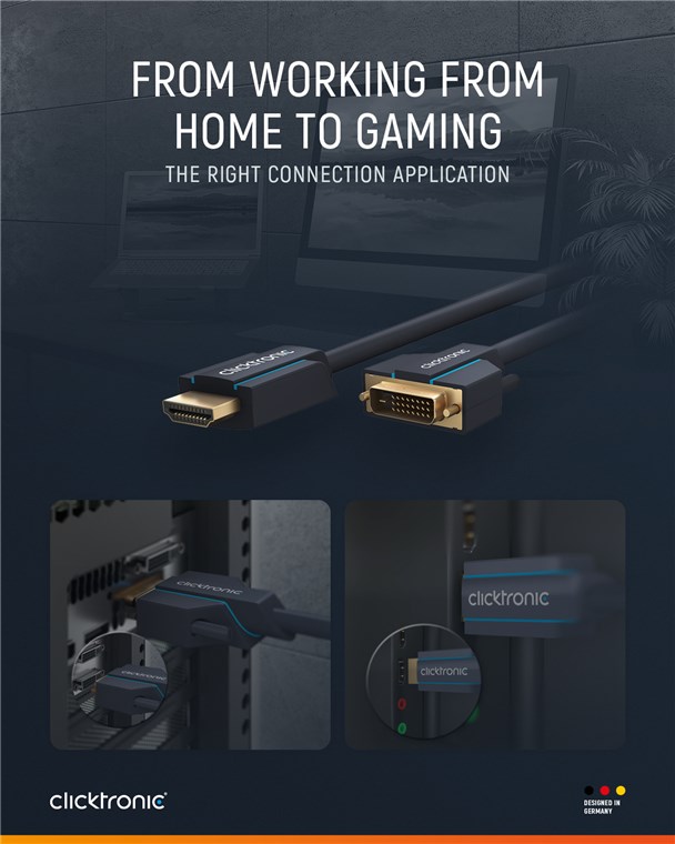 Clicktronic legt größten Wert auf Langlebigkeit und Stabilität. Unser Qualitätsversprechen: 10 Jahre Garantie auf unsere HDMI™-Kabel. Die markeneigene Konstruktion unserer Verbindungskabel macht sie äußerst robust. Der dreiteilige Steckeraufbau aus PVC- und ABS-Komponenten kompensiert ein ruckartiges Ziehen am Kabel, wodurch es ideal vor Kabelbrüchen geschützt ist. Hochwertige, vergoldete Kontakte und reine Kupferleiter übertragen digitale Signale in maximaler Qualität. Durch die schraubbare Befestigung am DVI-D-Stecker ist auch bei beweglichen Monitoren sicherer Halt und eine optimale Übertragung gewährleistet. Das DVI-D-auf-HDMI™-Adapterkabel ermöglicht ein gestochen scharfes Bild und besitzt eine schnelle Übertragungsgeschwindigkeit.
