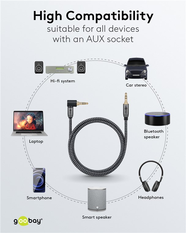 Die Goobay Plus Serie im schlanken, edlen Metalldesign in Sharkskin Grey. Das Klinkenkabel ist die Universallösung, um Sound von Smartphones, Laptops oder Tablets zu übertragen - für den bequemen Genuss von Musik, Podcasts oder Filmen über die HiFi-Anlage zu Hause oder das Autoradio unterwegs.
