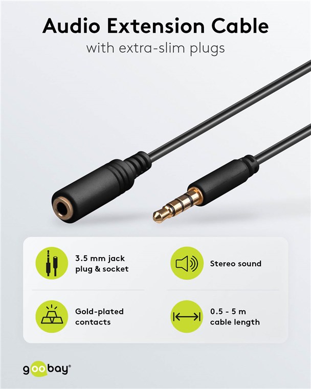• Geschirmtes Goobay-AUX-Verlängerungskabel mit kleinem Biegeradius