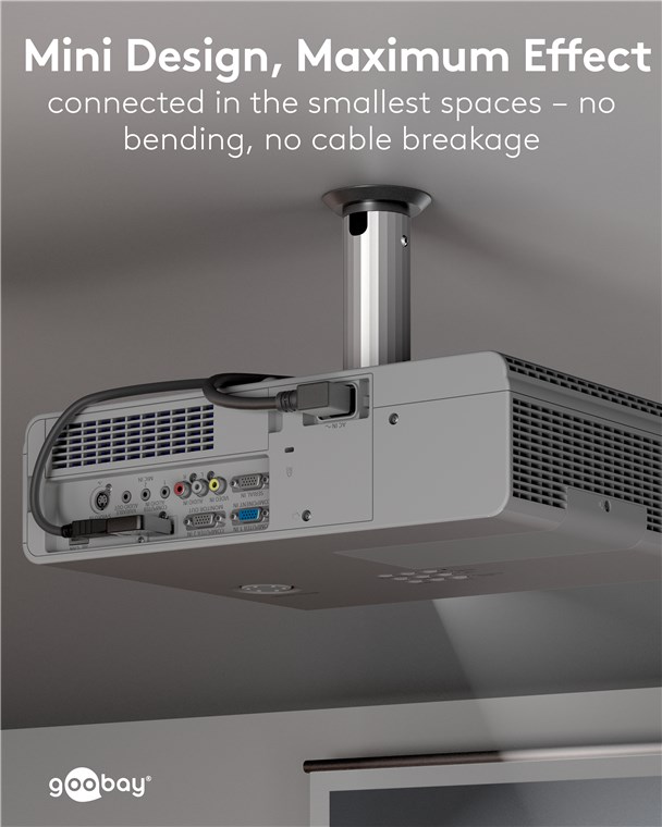 • Der 90°-Winkel des Steckers erlaubt einen seitlich abgewinkelten Anschluss auch auf kleinstem Raum, z. B. an rückwärtigen Gerätebuchsen