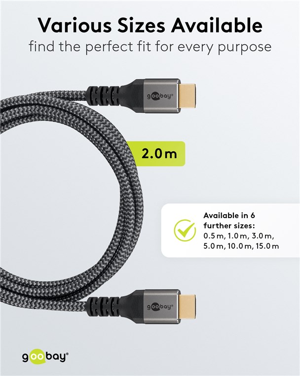 • Der geflochtene Textilmantel des Goobay-4K-Kabels sorgt für eine angenehme Haptik und ist schonend auf sensiblen Oberflächen