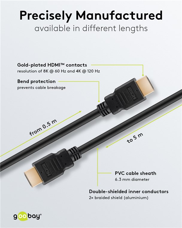 Goobay 58263 Ultra High-Speed HDMI™- Kabel mit Ethernet, zertifiziert VPE Cable Tag Mindestbestellmenge 1