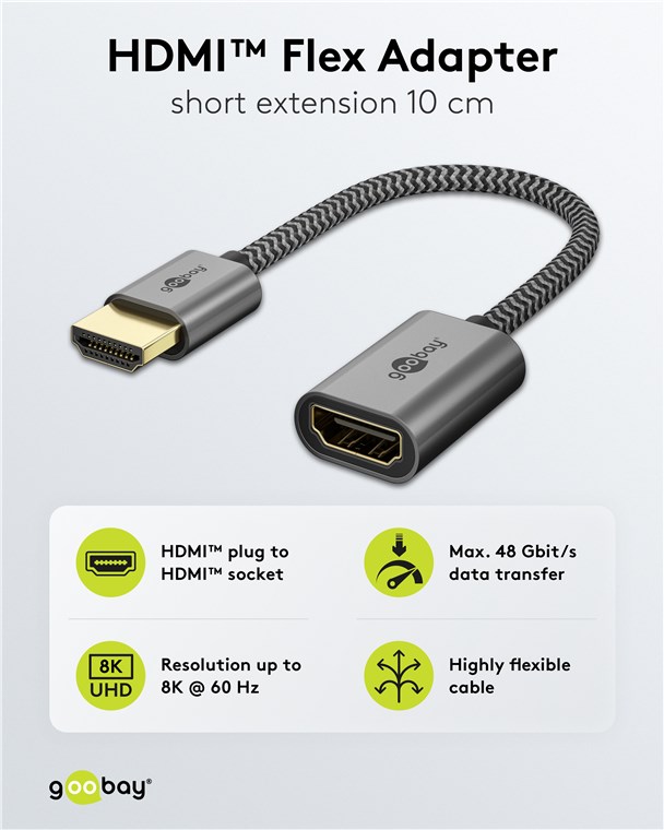 Weiterführende Links zu "Goobay 79145 Ultra High-Speed HDMI™-Flexadapter VPE Retail Polybag Mindestbestellmenge 1"