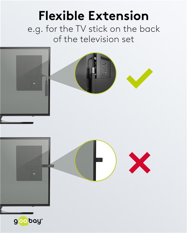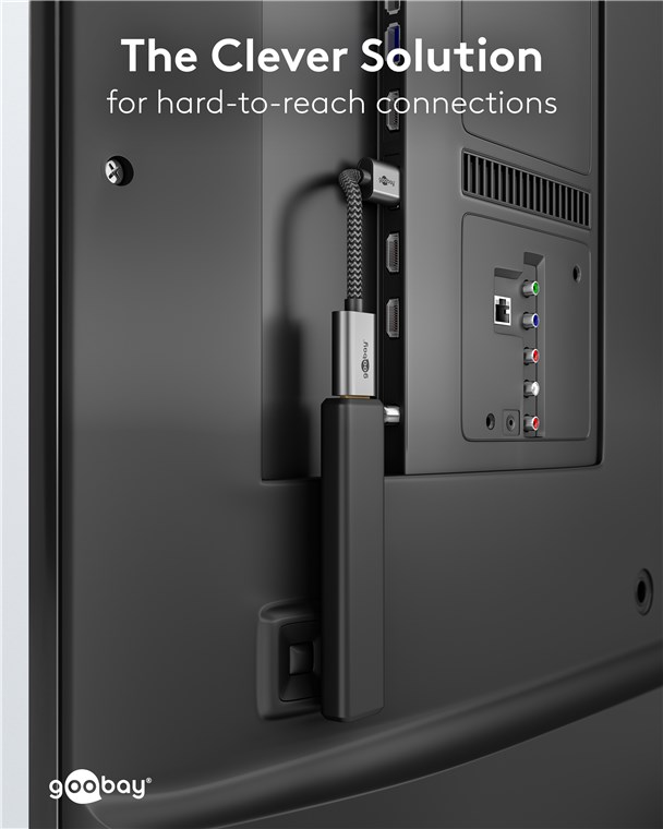 • Flexible und biegsame Kurzverlängerung für schwer zugängliche Anschlüsse z. B. an der TV-Rückseite