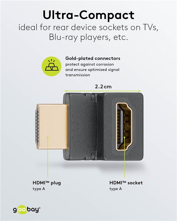 Weiterführende Links zu "Goobay 65744 HDMI™-Winkeladapter VPE Bulk Mindestbestellmenge 1"