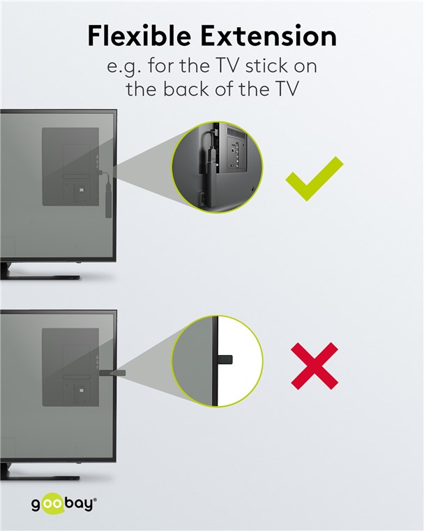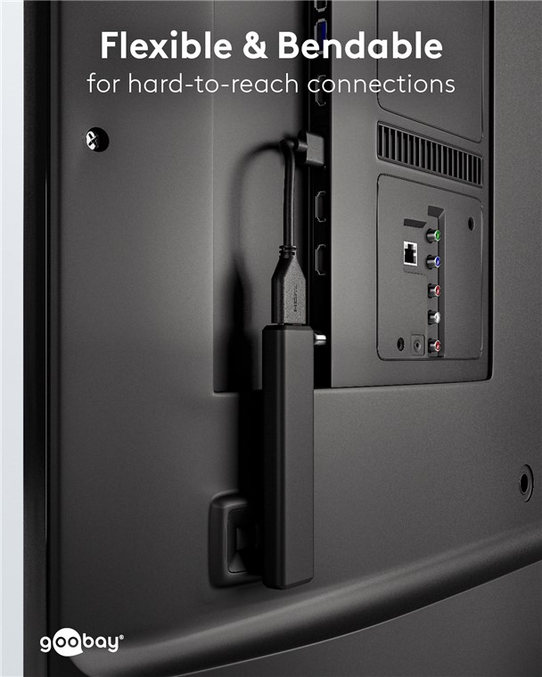 • Flexible und biegsame Kurzverlängerung für schwer zugängliche Anschlüsse z. B. an der TV-Rückseite