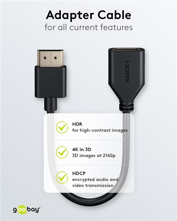 • Adapterkabel für alle gängigen Funktionen wie HDCP, 3D, 4K 3D und HDR