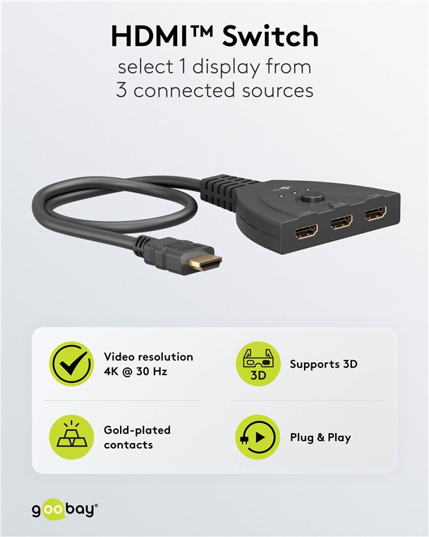 Produktinformationen "Goobay 58487 HDMI™-Umschaltbox 3 auf 1 VPE Bulk Mindestbestellmenge 1"