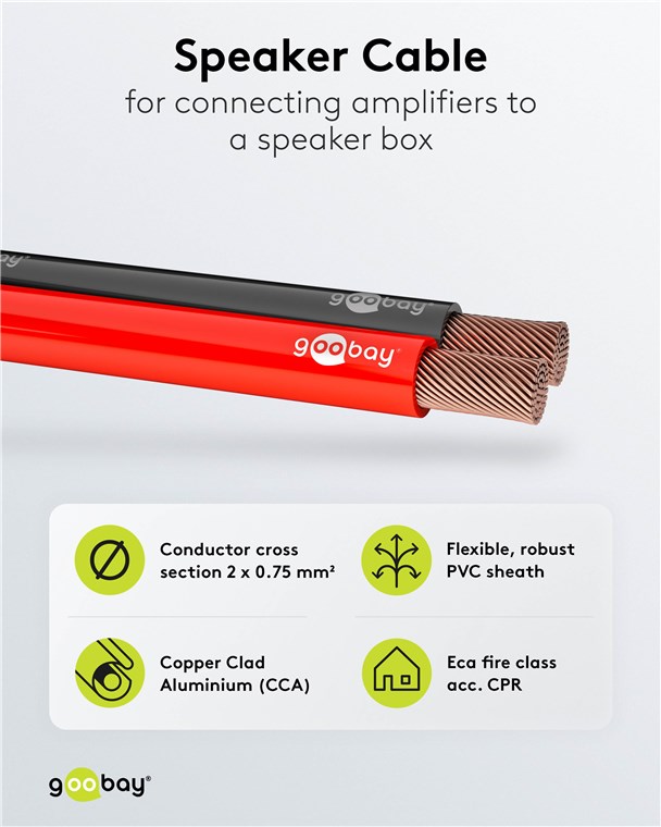 • Als Meterware geliefert, kann das Goobay-Hi-Fi-Lautsprecherkabel für den jeweiligen Einsatz selbst konfektioniert werden.