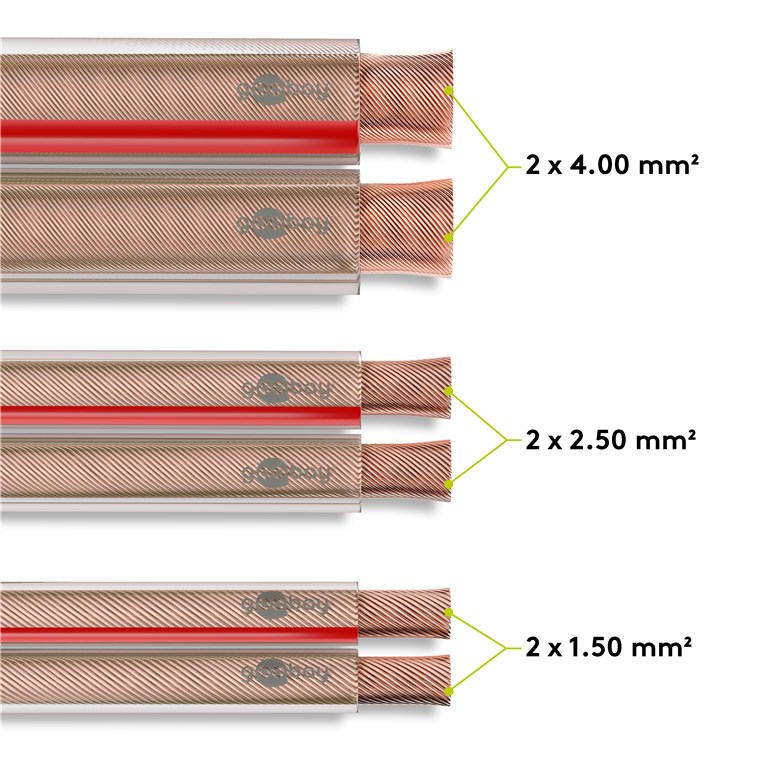 • Als Meterware geliefert, kann das Goobay-Hi-Fi-Lautsprecherkabel für den jeweiligen Einsatz selbst konfektioniert werden.