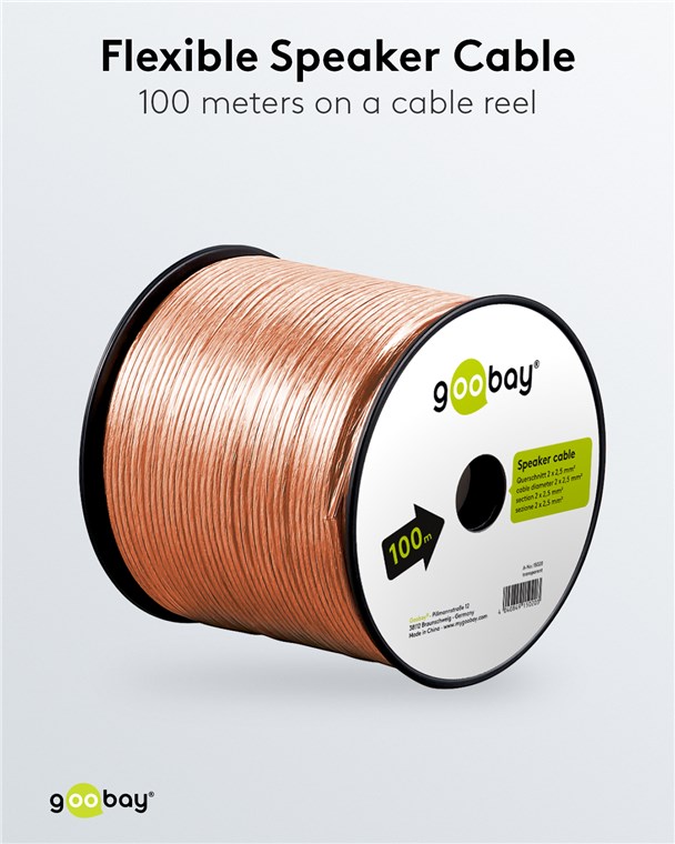 • Als Meterware geliefert, kann das Goobay-Hi-Fi-Lautsprecherkabel für den jeweiligen Einsatz selbst konfektioniert werden.