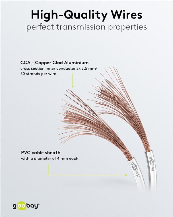 • Lautsprecherkabel mit hochwertiger Litze (CCA: Copper Clad Aluminium) für gute Übertragungseigenschaften z. B. zwischen Hi-Fi-Anlage und Lautsprecher