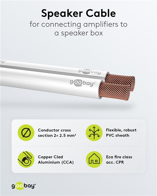 • Als Meterware geliefert, kann das Goobay-Hi-Fi-Lautsprecherkabel für den jeweiligen Einsatz selbst konfektioniert werden.