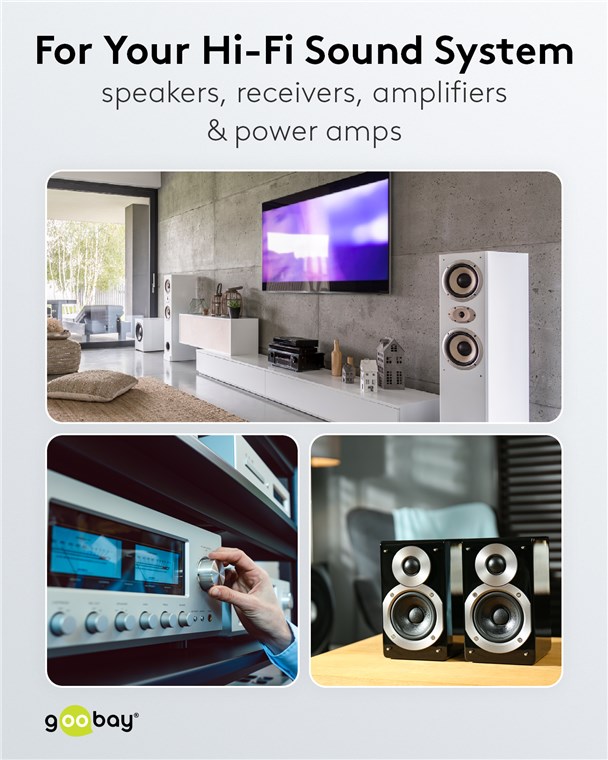 • Zur einfachen Verkabelung von Hi-Fi-Anlagen, Heimkino-Systemen, Boxen, Receivern, Verstärkern und Endstufen