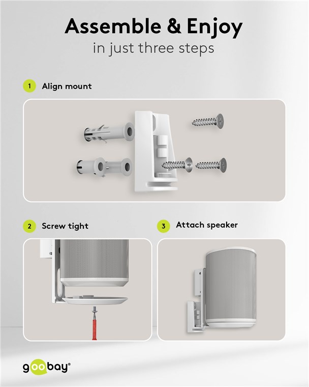 • Per Schraubmontage ist die Lautsprecher-Halterung einfach an der Wand zu befestigen
