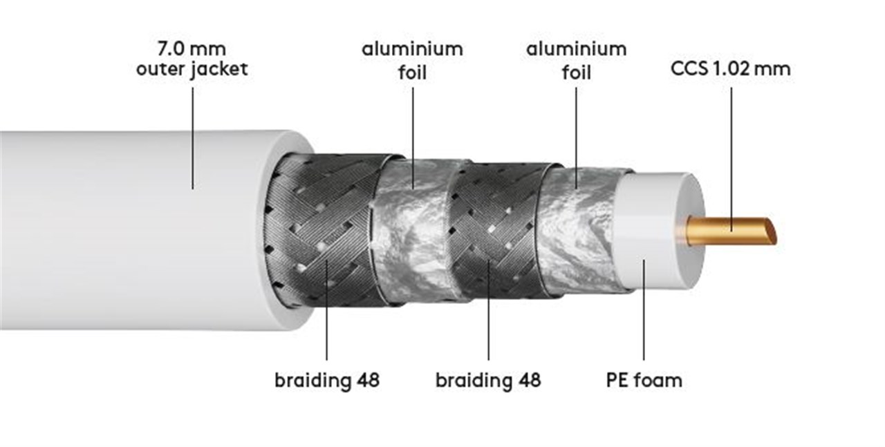 120 dB SAT-Koaxialkabel, 4x geschirmt, CCS weiß :