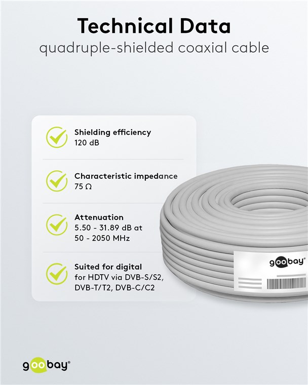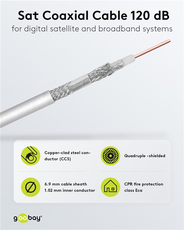 Weiterführende Links zu "Goobay 27518 120 dB SAT-Koaxialkabel, 4x geschirmt, CCS VPE Cable spool-drum Mindestbestellmenge 1"
